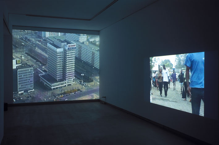 DRIVE 2002/2003, two channel video installation, variable dimensions, color, sound, 45'. Two video projectors, two dvd readers and a sound system. Variable dimensions.
