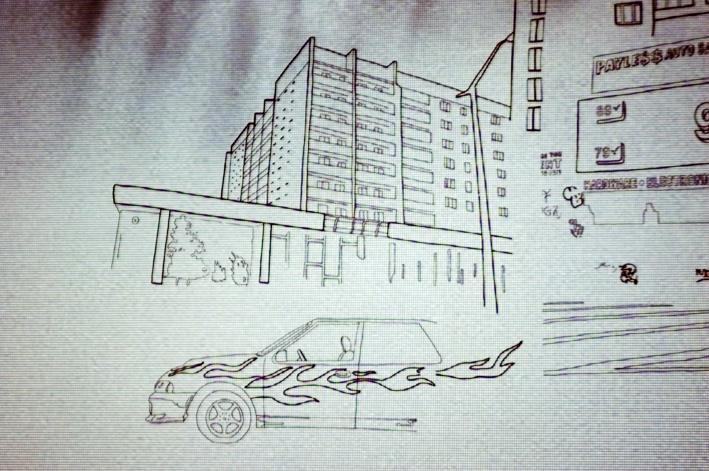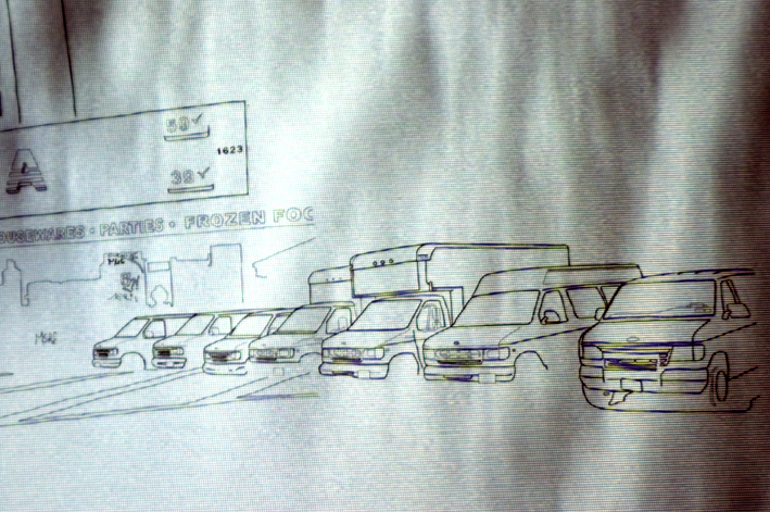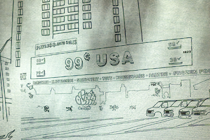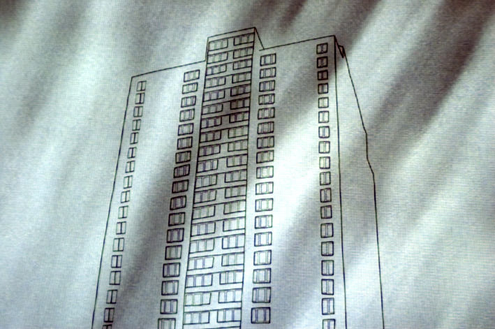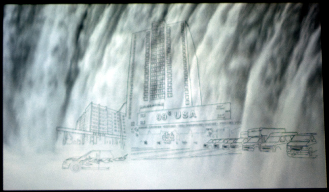 Conspiração, Profecia e Utopia #3 2009 Video projection over drawing on canvas, silent. Acrylic and markers on canvas, video projector, dvd player and dvd disc. 65 x 116 inches