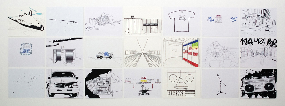 Travel East, Travel West, After All, Home is Best Drawing panel, 21 pieces (48 x 60 cm) 2004/2009 Markers, color pencils and acrylic on paper 150 x 453 cm (48 x 60 cm each paper)