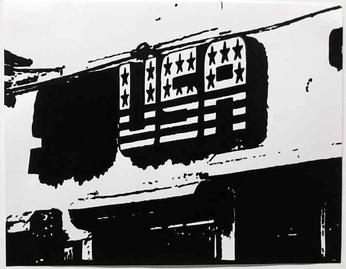 Drawing on paper. Archival marker, gouache.